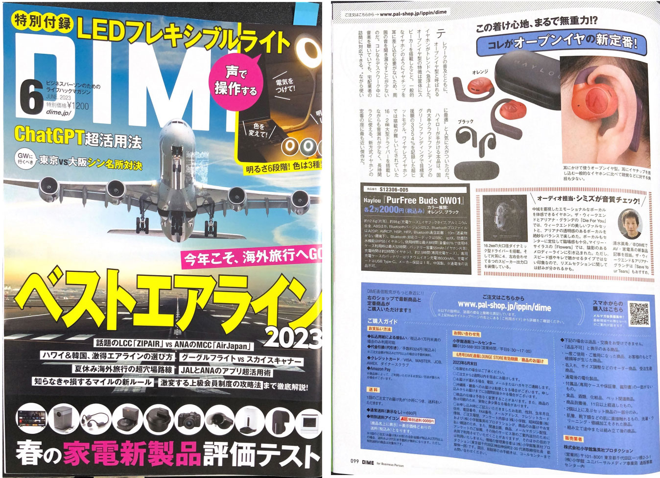 DIME(ダイム) 2023年6月号で「Haylou PurFree Buds OW01」が紹介されました