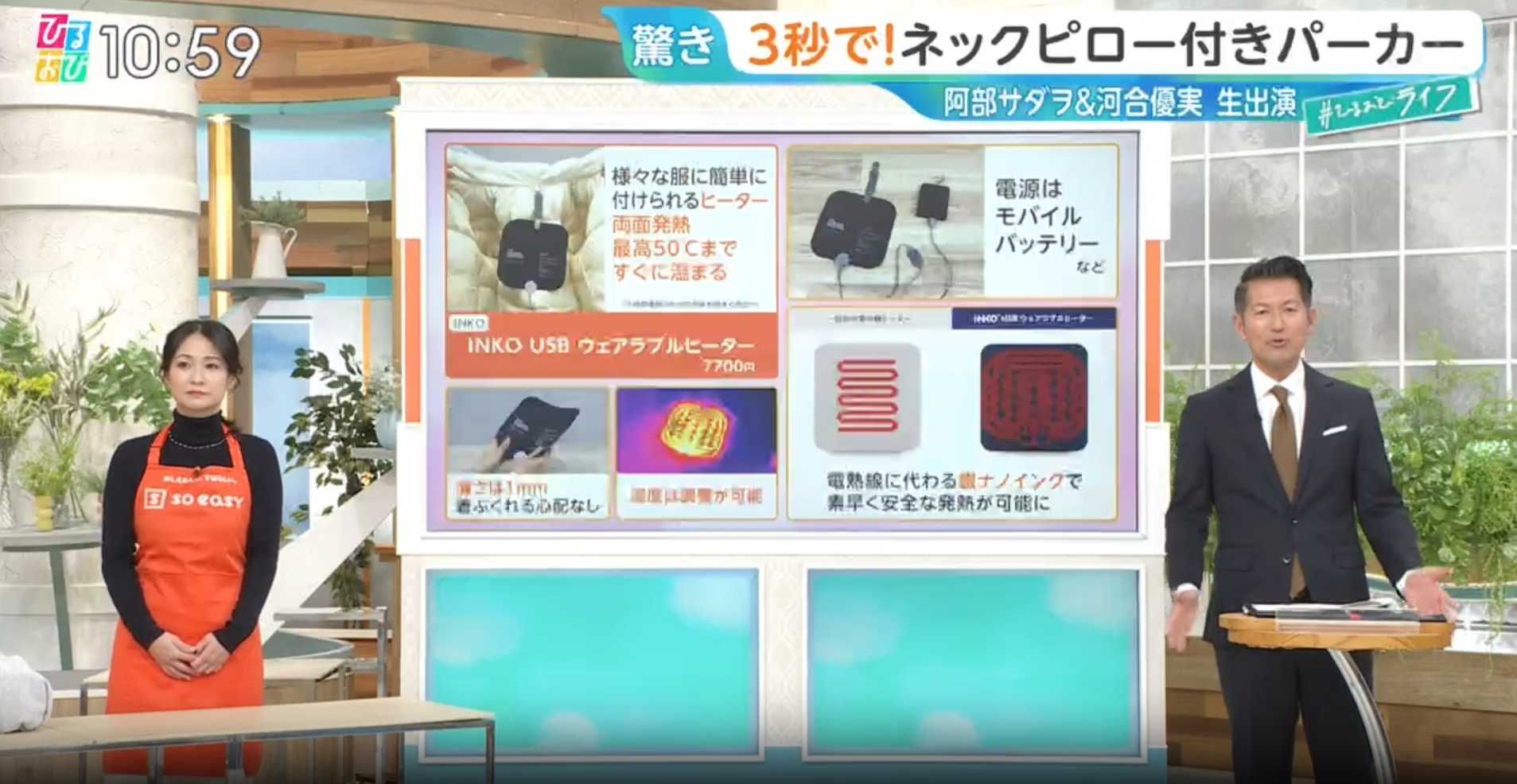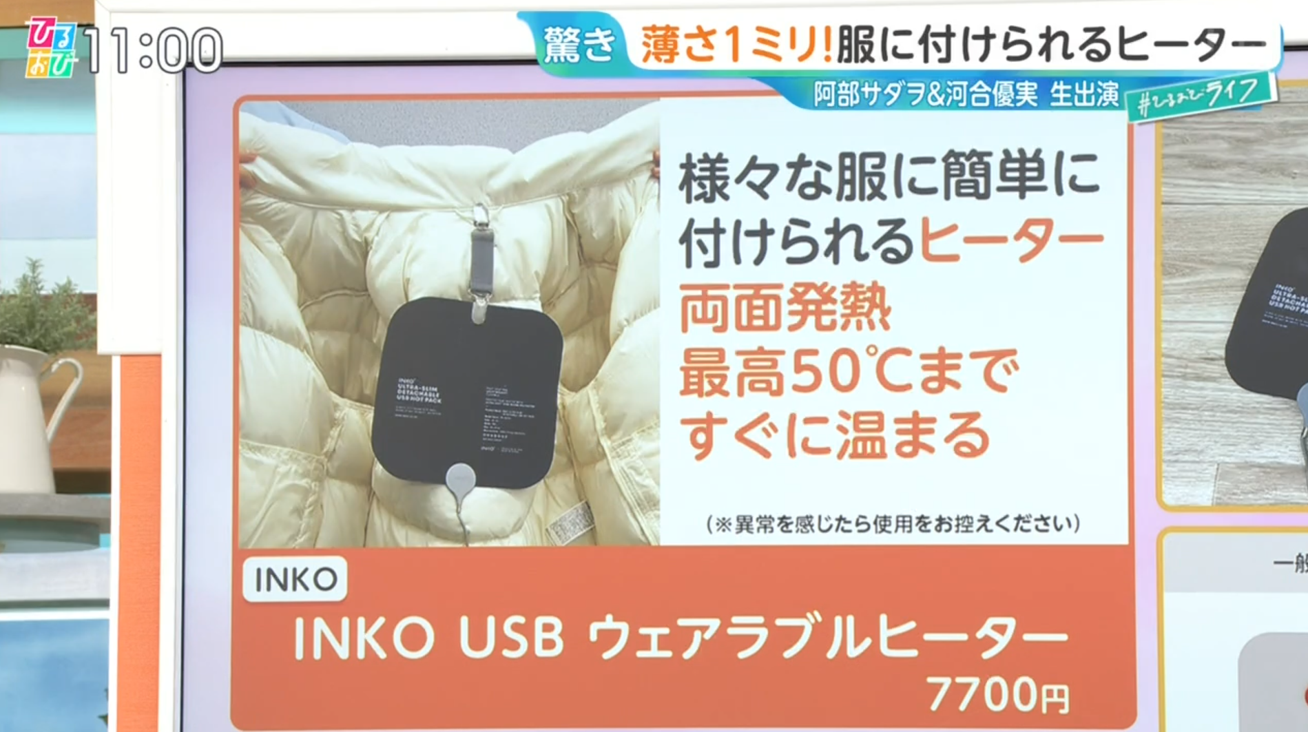 TBSテレビ「ひるおび」で「INKO USB ウェアラブルヒーター」が紹介されました
