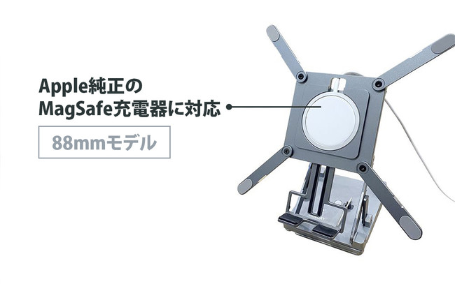 88㎜モデルのみ、APPLE純正のMagSafe充電器をスタンドのホールにはめ込むことができます。