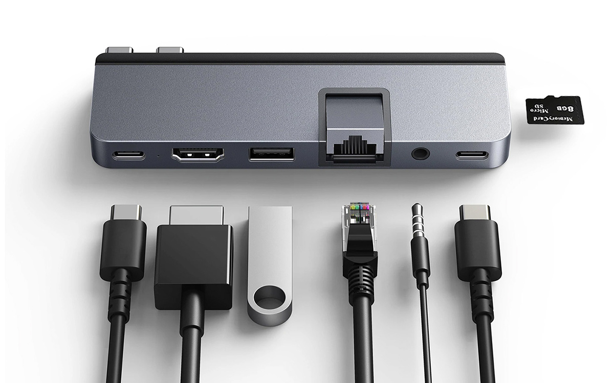 当製品は、ダイレクトプラグイン(直付け)タイプのUSB-Cハブです。2016年モデル以降のMacBookに対応し、最新のM1 Pro/Maxチップを搭載したモデルに最適化し設計されています。ハブとMacBookのMagSafe充電ポートの干渉を起こさないように設置することができ、その他microSDカードスロットや汎用性の高いポートを搭載しました。