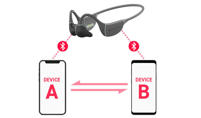 同時に最大2台までBluetooth接続が可能です。スマートフォンとPCなど、必要に応じてイヤホンで流れる音源をスムーズに切り替えることができます。オンラインミーティングや動画視聴などイヤホンを装着したまま作業をする際に活躍します。