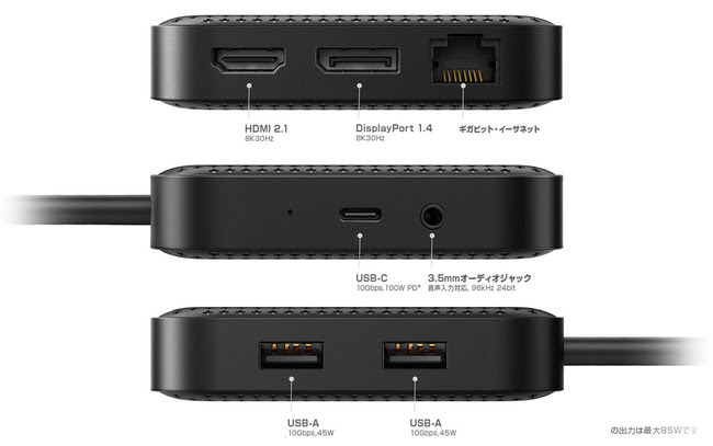 85W PowerDeliveryに対応しています。10Gbpsの高速データ転送も可能です。