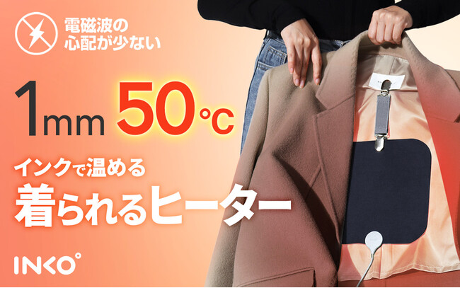 当製品は、電熱線に代わる銀ナノインクを用いて作られた、薄さわずか1mmの超薄型・超軽量のウェアラブルヒーターです。INKOの企業ミッションである「ECOなものづくり」より、何度も使える持続可能な「エコな貼るカイロ」をコンセプトに開発しました。使い捨てカイロのゴミ問題に着目したサステナブルな製品です。