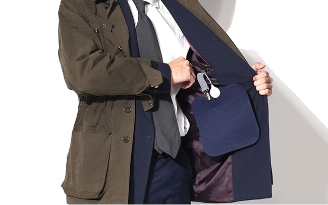 超薄型のウェアラブルヒーターです。電熱線に代わる銀ナノインクによる世界初の温熱マット特許技術が、その軽量スリムなデザインを実現しました。服の下に装着することで、目立たずにしっかりと温まります。