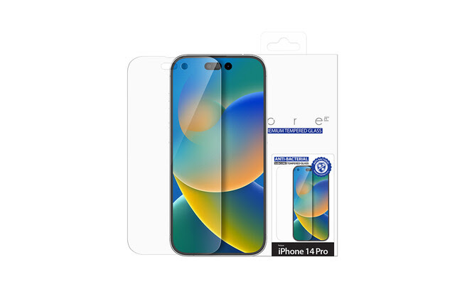 ディスプレイを保護する強化ガラスフィルムです。抗菌コーティングで衛生面に配慮されており、硬度9Hを誇ります。