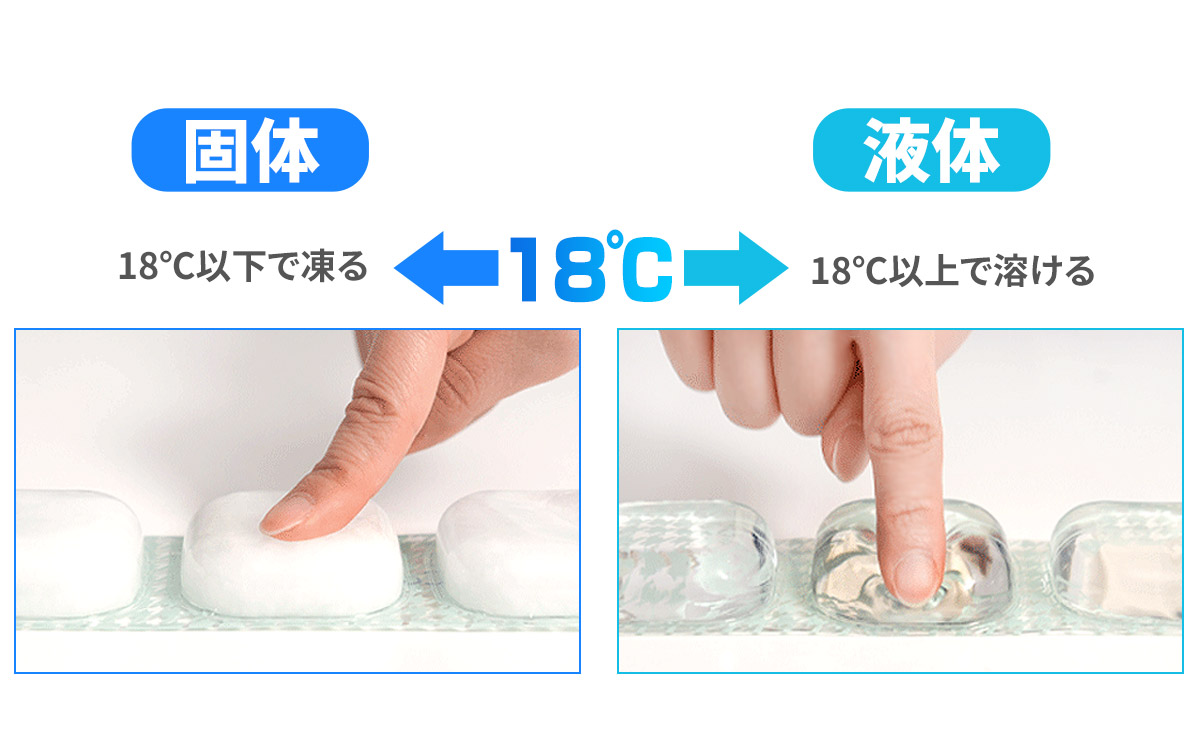 高純度99.3%の高純度PCMが18℃以下で凍結、18℃を長くキープ