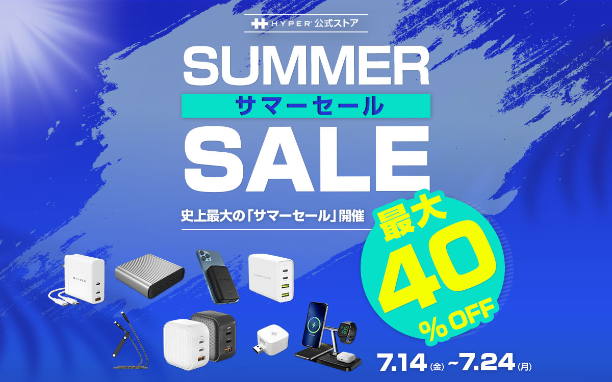 HYPER(ハイパー)は、2023年7月14日(金)から7月24日(月)まで「サマーセール」を開催します。期間中は対象製品が最大40%オフで購入可能です。