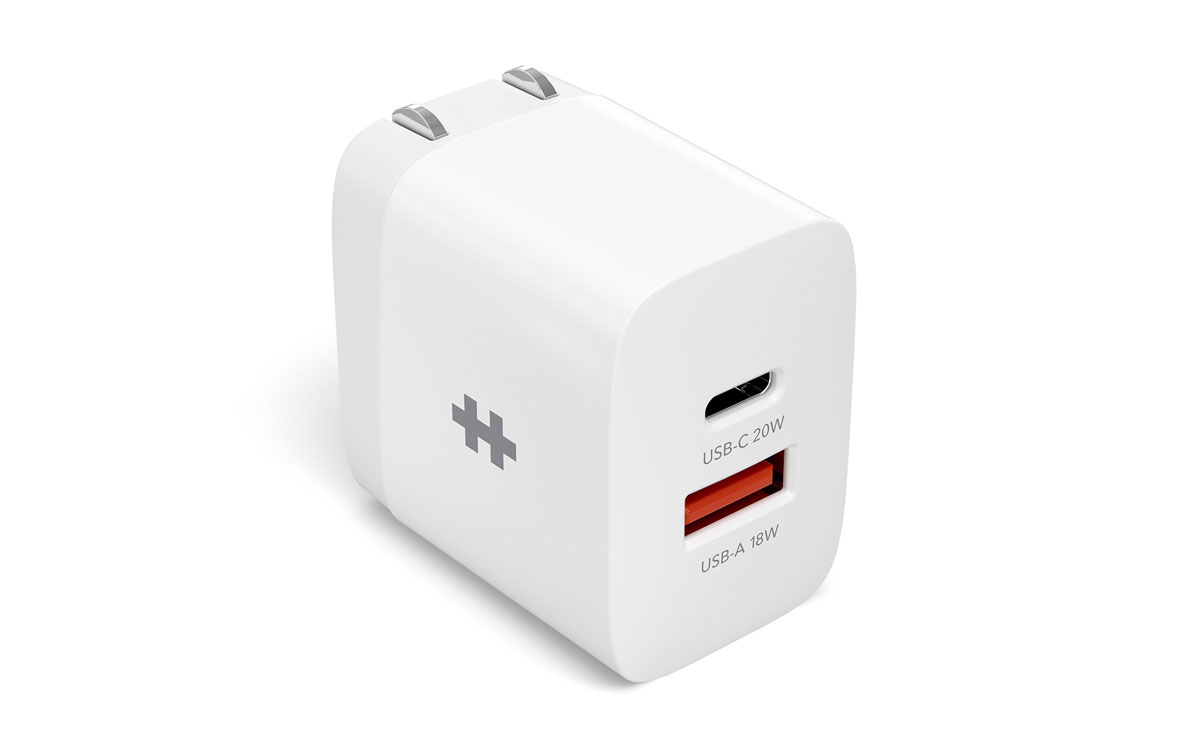 最大20W出力でデバイスを急速充電できる電源アダプタです。 USB-CとUSB-Aポートを1口ずつ搭載し、iPhoneやAirPods、Apple Watchなどの機器を充電可能です。最新のiPhoneシリーズも約30分で0%~50%まで充電が可能です。