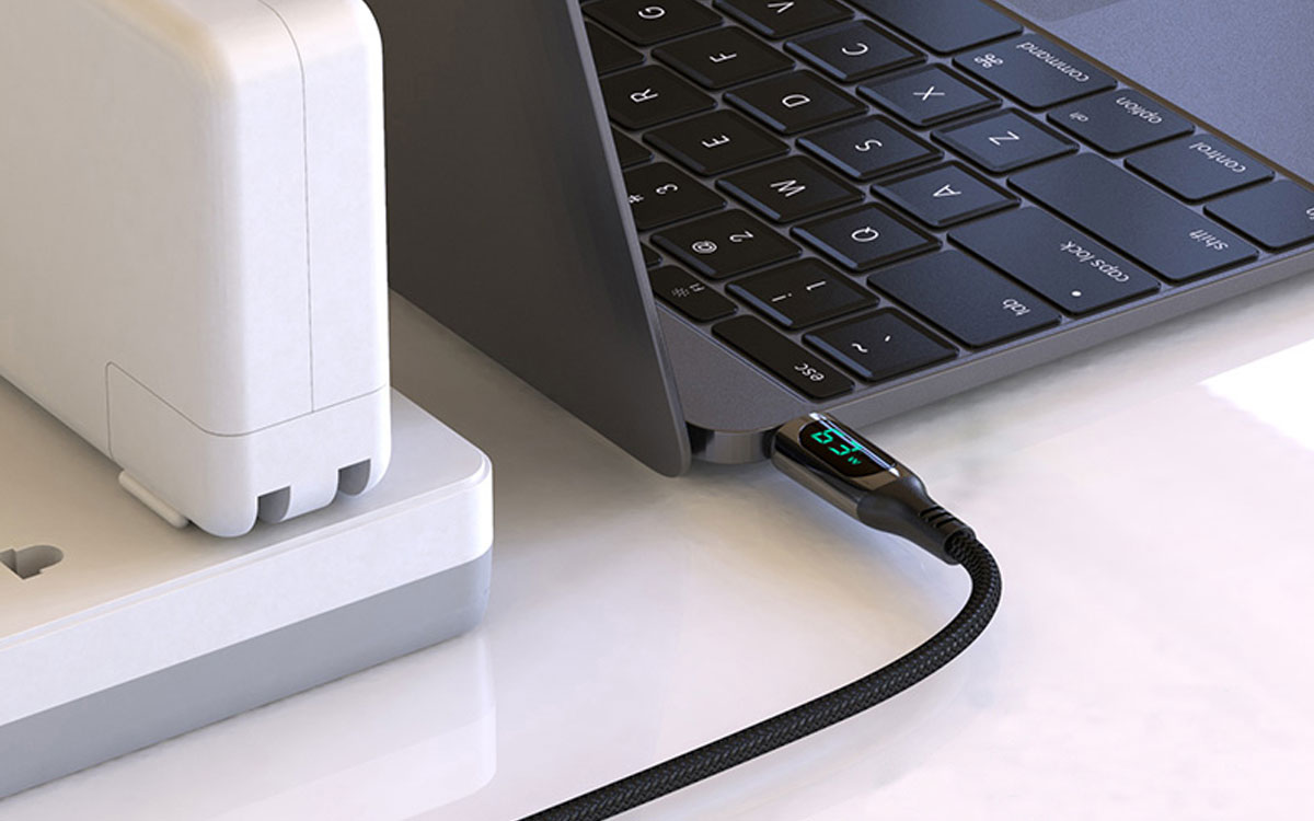 当製品は、Qualcomm Quick Charge 4.0の高速充電に対応し、最大240Wでの送電が可能なUSB-Cケーブルです。ケーブル長は1.5mで取り回しが良く、被覆素材には高強度ナイロンで耐久性にも優れています。LCDディスプレイが、電力と充電ステータスを鮮明に表示。充電状況が一目で確認できます。MacBookその他ハイスペックノートPCに、安定した電力提供が可能です。