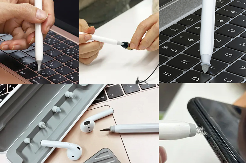 AirPodsやiPad、iPhone、MacBookなどのデバイスで使用できます。交換可能なツール設計は、汚れ、ほこり、耳垢、皮脂などを徹底的に除去し、品質維持・使用年数を延ばすのに役立ちます。
