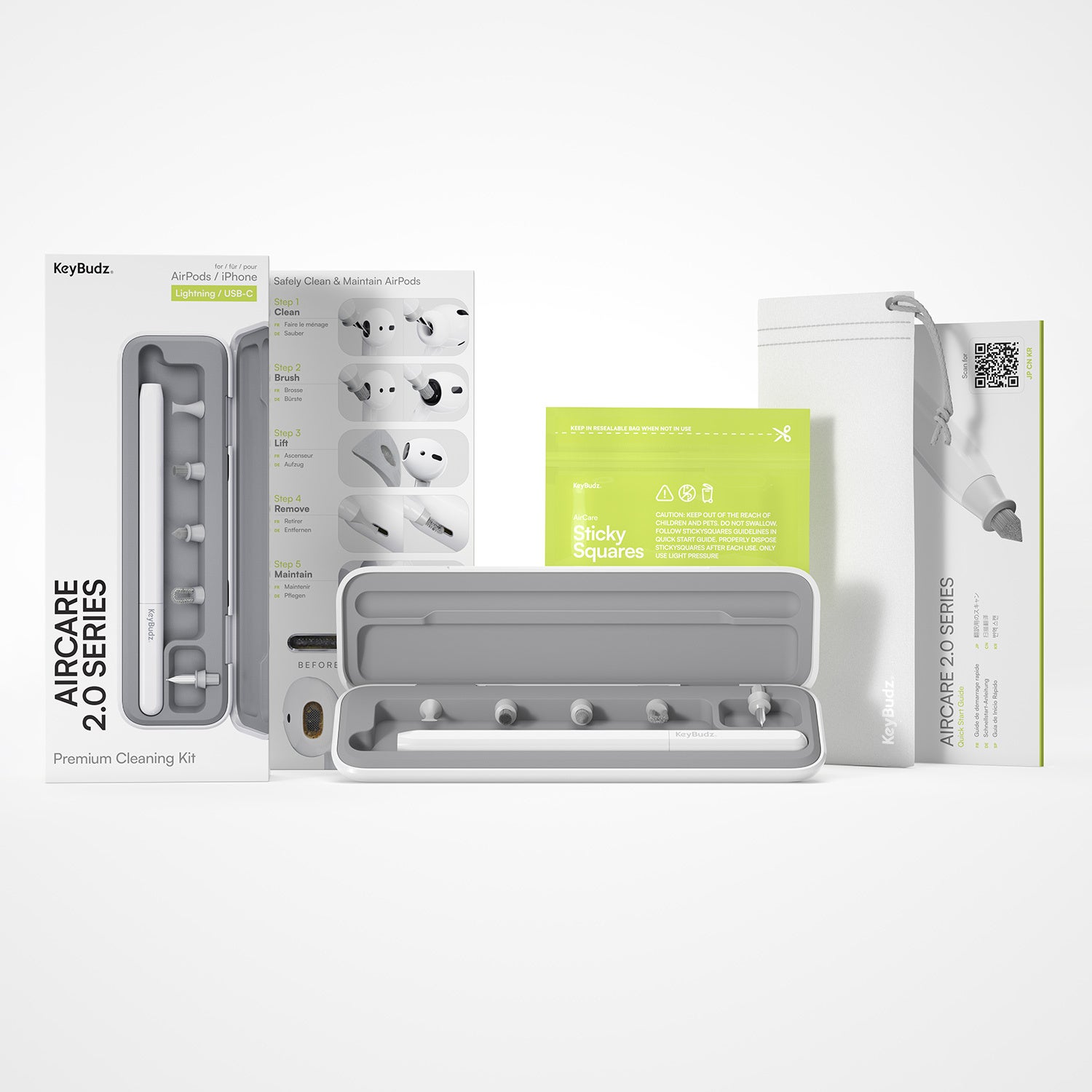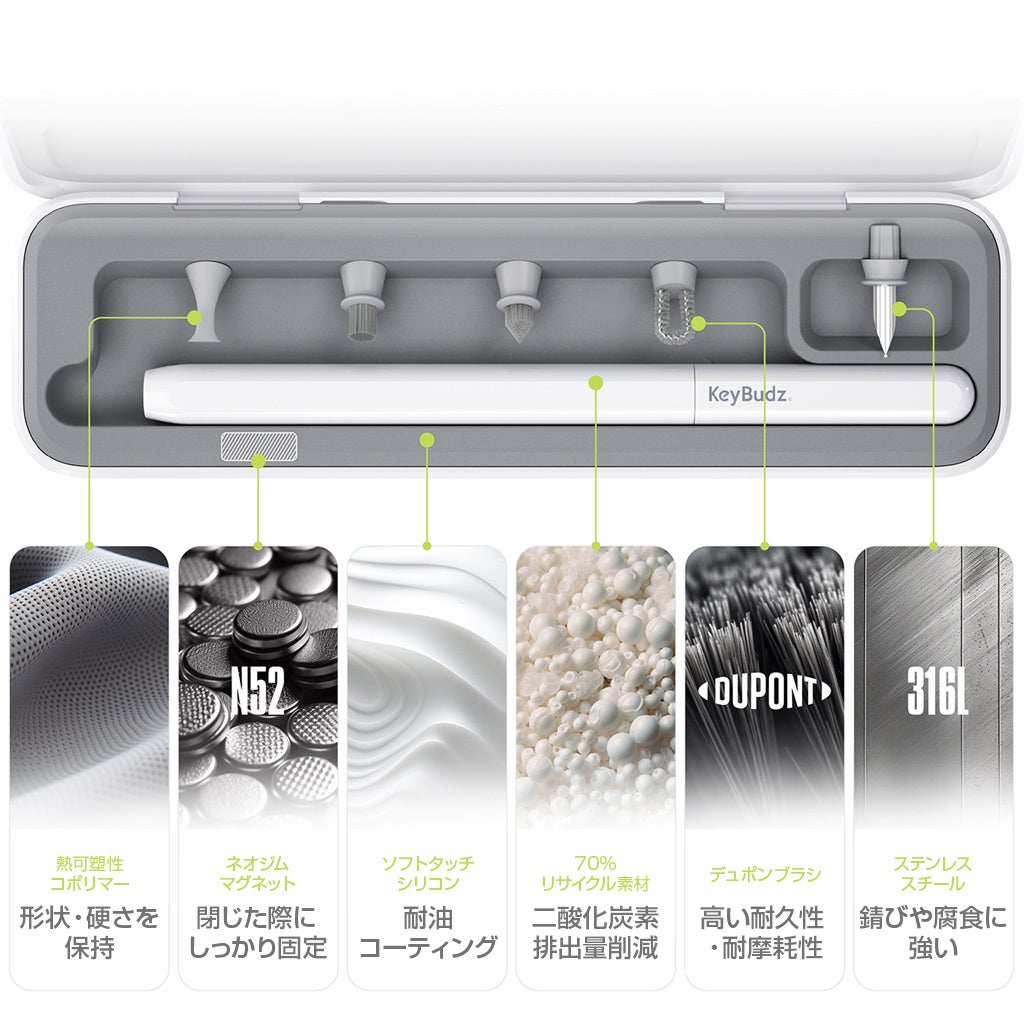 Appleのクリーニングガイドに準拠した設計と素材を使用しており、安全かつ徹底的なクリーニングを実現します。デバイスの細部まで、Appleが推奨する方法に基づいて掃除することができます。このキットを正しく定期的に使用することで、デバイスの性能や耐久性を最大限に保つことができます。イヤホンでは音質改善も期待できます。
