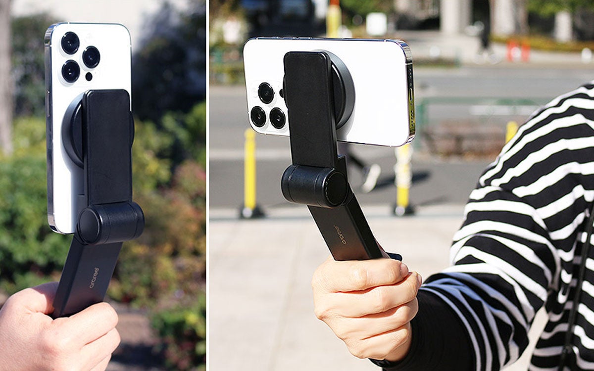 コンパクトで持ち歩きやすい、iPhone用マウントです。