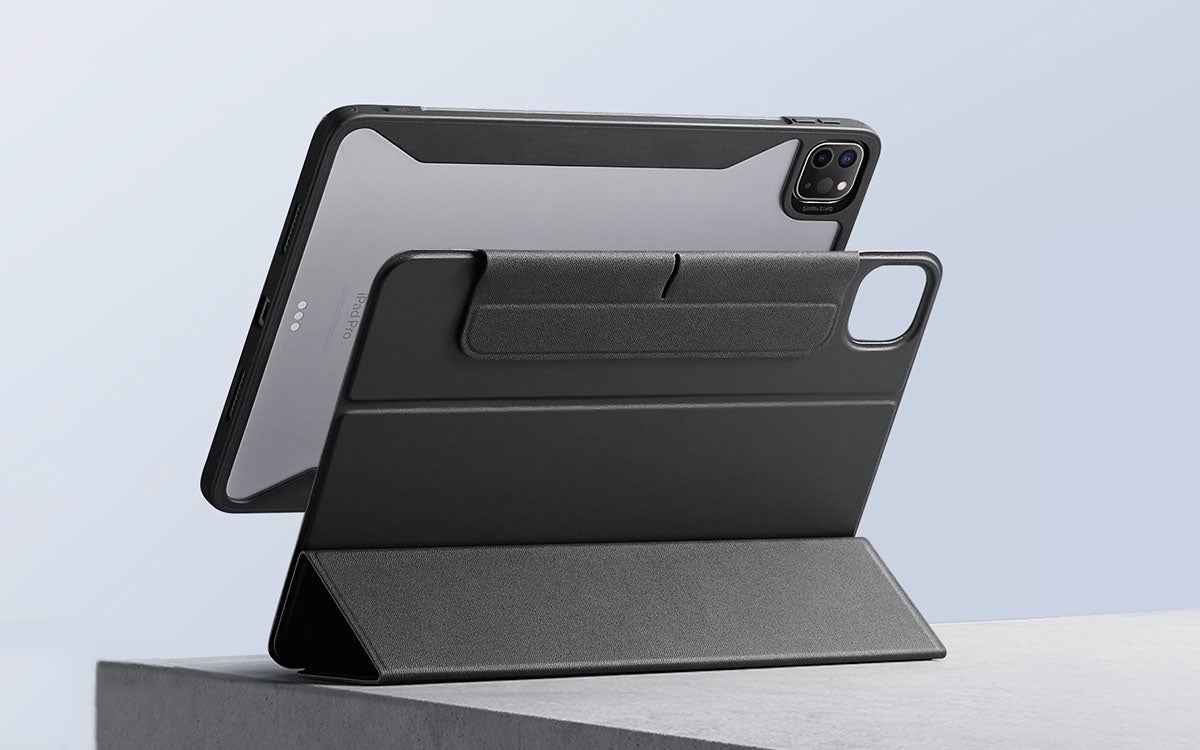 マグネット式フリップケースと組み合わせて使用することでiPadを360度全方位からしっかり保護します。