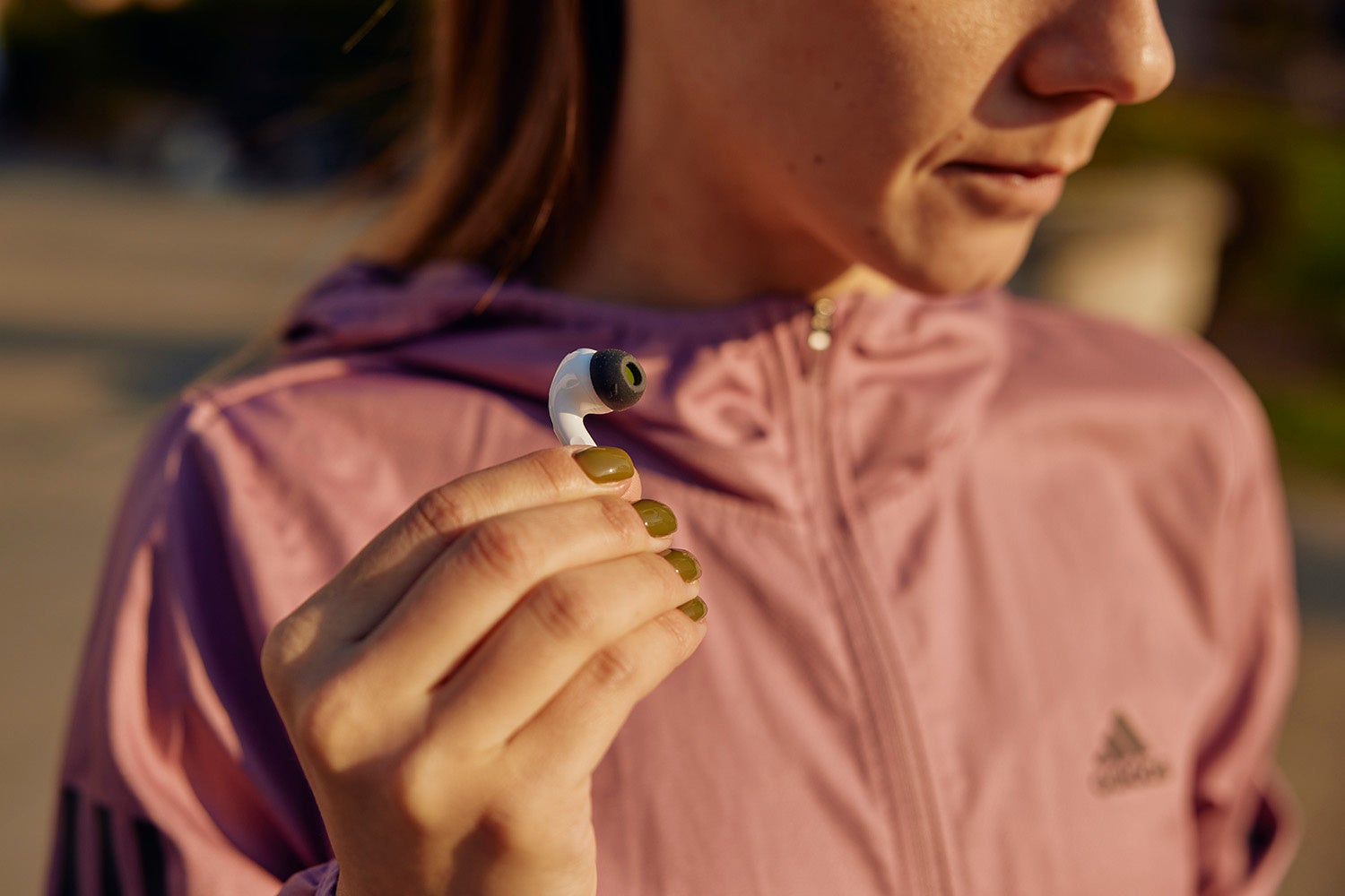 最高のリスニング体験を実現するため、必要・不要な音を選別するように、業界トップの音響エンジニアと協力してチューニングを行いました。イヤーチップの素材・密度は音質を変化させます。AirPods Pro のノイズキャンセリング性能を更に強化しつつ、高音と低音、音響特性を最適化しています。