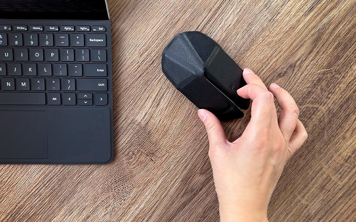 伝統的な折り紙から着想を得た頑丈な三角形構造です。安定感のある立体構造を保ち、負荷をかけても崩れることはありません。軽量な本体は落下時の衝撃に強く、一般的なマウスに比べて高い耐久性を誇ります。